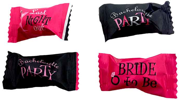 We have your perfect Bachelorette Party candy, these great tasting and even better looking wrapped butter mints not only make a great sweet treat for everyone at the party, but can be used to liven up any table with their fun and festive colors and sayings.