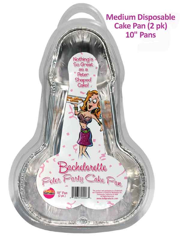 Each 2 Pack of these Disposable Pecker Cake Pans - regular sized - make an easy and inexpensive way to have a pecker shaped cake for the festivities.