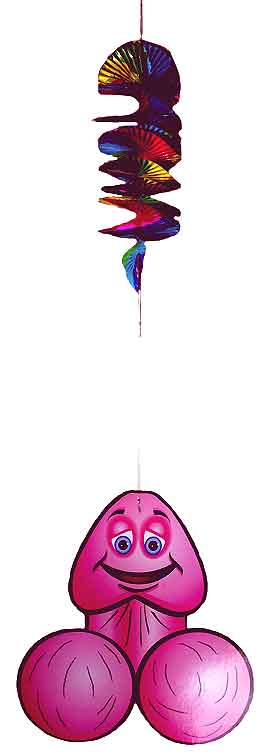 Each package of these Foil Pecker Decorations contain 4 - 6" Pink Peckers attached to rainbow colored foil and a string to hang them from.