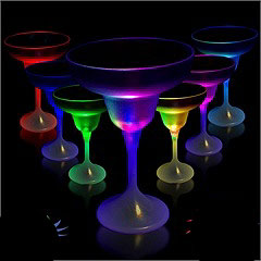 Each glass stands 6" tall and comes complete with batteries, so just add your favorite margarita, flip on the switch and watch this get some attention!!