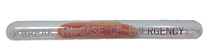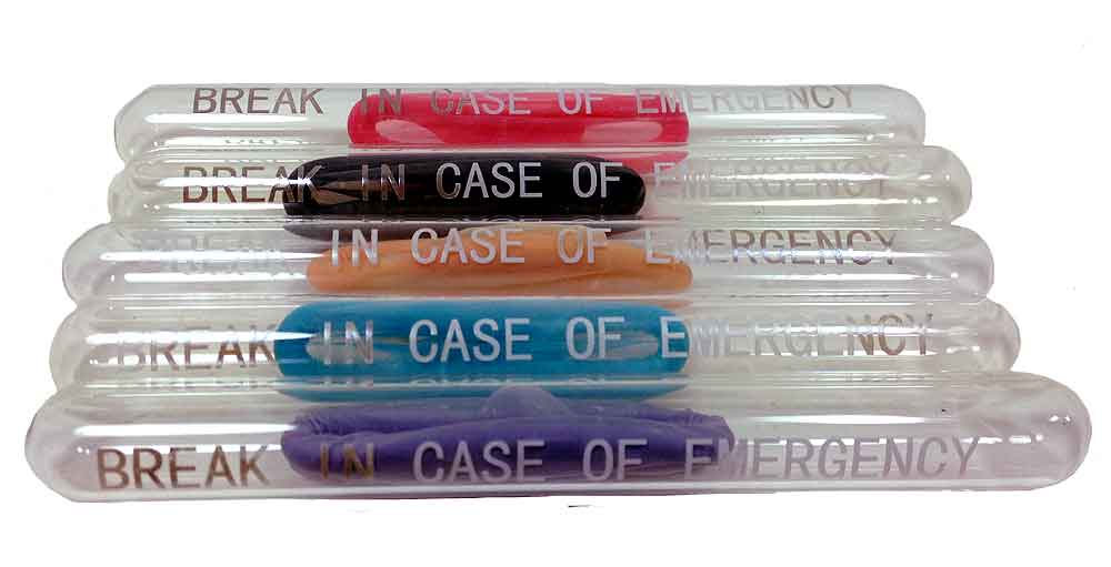 Each Emergency Condom tube is approximately 4" long and come in a real glass sealed test tube.
