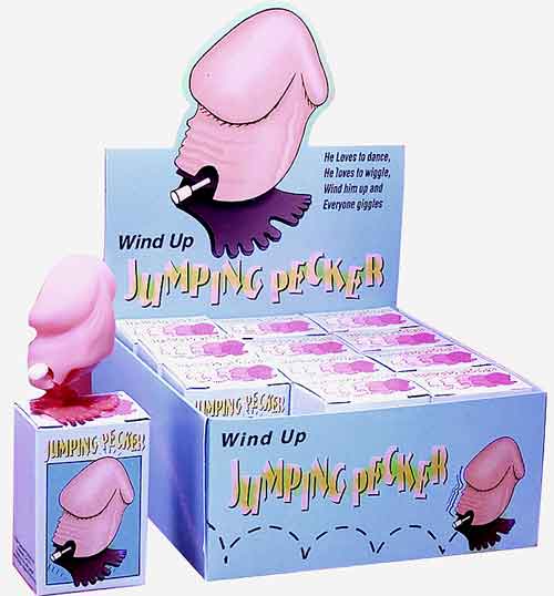 Each Jumping Pecker stands about 2" tall and have a little wind up mechanism, that once you are done winding him up, just set this pecker down and watch him dance around the table.