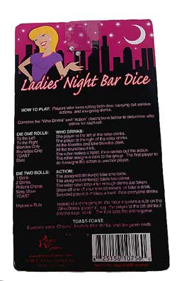 The Ladies Night Bar Dice are a perfect additional Bachelorette Party Game to help with the festivies at any bar or club.