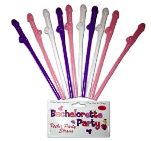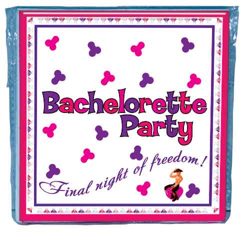 These are adorable, each plate stating bachelorette party and then the white plates have tiny pink and purple peckers that actually look more like tiny mickey mouse ears, very cute.