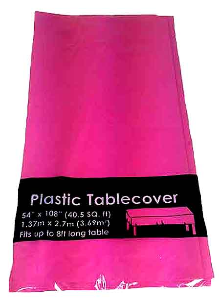 Each package contains 1 - 54"x108" Pink plastic tablecloth.