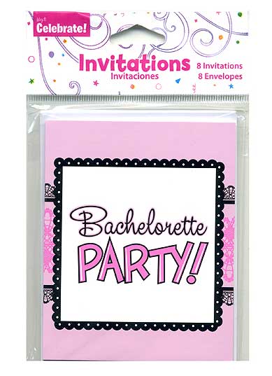 This a cute an inexpensive package of darling looking Bachelorette Party invitations. Each package comes with 8 - invites that are 5" x 4" and are in a soft pink background with a white box stating Bachelorette Party!