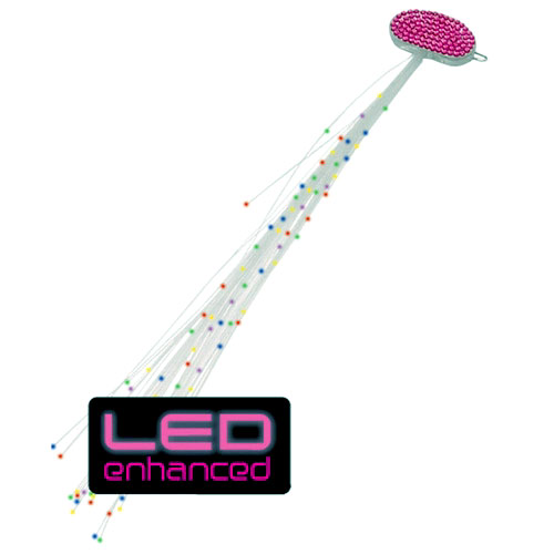 Well, look no further - this Light Up Bachelorette LED Hair Clip will make sure and get that job done!! The Flashing LED Hair Clip is super cute, with an oval pink rhinestone studded clip top, that has an On/Off switch, then it has lots of tiny thin clear fiber-optic strands that come out of the base, that when turned on - flash and light up different colors.