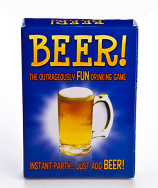 The Beer! card game is where you assign drinks, steal from each other, have blackouts, and even and occasional alcohol induced hook-up.