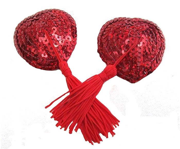 The seductive Red Heart Nipple Tassels come in a tasteful box by Spencer & Fleetwood and each box contains two sequined Burlesque Nipple Tassels with special adhesive sticker.