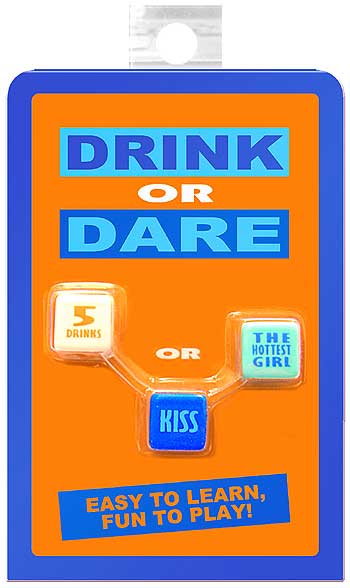 The Drink or Dare Dice is a package of 3 Dies, one White, one Light Blue and then the Dark Blue one.