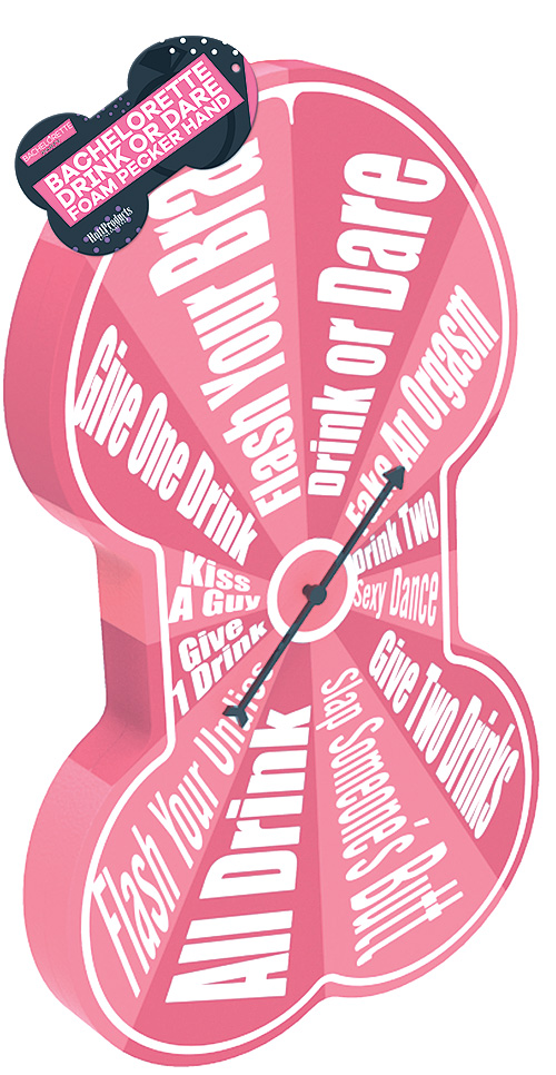 On the face of the drink or dare penis foam spinner game, it has a spinner and then 12 printed dares to really get the party going.