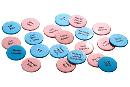The Blue chips have the activities she would perform on him, and the pink ones have the activities he would perform on her.