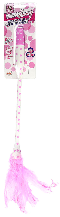 The vibrating tickler is over 14" long and when you twist the handle, the Horney Honey Feather Tickler comes to life with a soothing vibration.