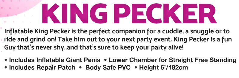 As the box states: "Inflatable King Pecker is the perfect companion for a cuddle, a snuggle or to ride and grind on! Take him out to your next party event. King Pecker is a fun Guy that's never shy..and that's sure to keep your party alive!"
