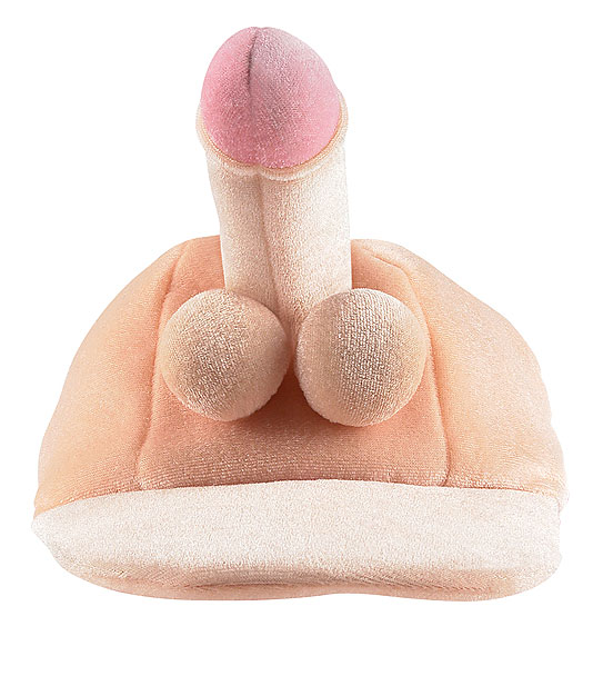 It is a typical baseball hats but in a peach fuzzy material with a foam penis with balls at the front of the hat, great to completely embarrass the Bride to Be or Groom!!