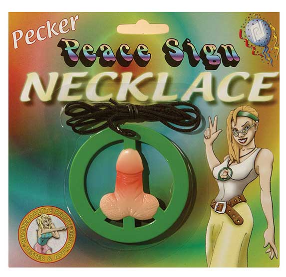You find anything else like this around anywhere, nope, you've got it, it's the Pecker Peace Sign Necklace and definitely one of those bachelorette party supplies that will get double-takes where ever you go.