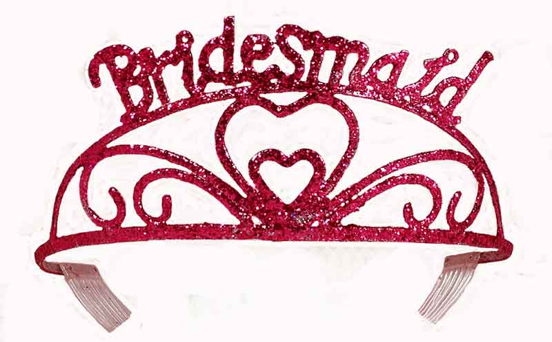 These pink sparkle Bridesmaid Tiaras are so cute and like all the other tiaras, are very well made, the metal frame adorned with pink sparkly gilter definately make a statement and stay sturdy on your head as the comb style clips on the back of the tiara really hold it tight.