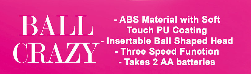 The Ball Crazy Wet Dreams Vibe has a PU Super Soft Coating, insertable Ball Shaped Head, Three Variable Speed function, and takes 2-AA Batteries that we include the the vibe!!