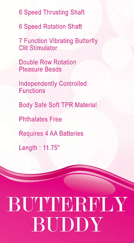 A Vibrator is such a thoughtful gift to give any Guest of Honor at her Bachelorette Party or Bridal Shower, and the Wet Dreams Plum Crazy Butterfly Buddy Vibrator is perfect!! This is one of those truly advanced vibes with 6 Speed Thrusting Shaft, 6 Speed Rotation, 7 Function Vibrating Butterfly Stimulator and a Double Row of Pleasure beads. The Wet Dreams Butterfly Buddy is made of Soft TPR Material that is Phthalates & Silicone Free. The Bachelorette Vibe is 11.75 inches long and we even include 4-AA Batteries so it comes ready to go!!