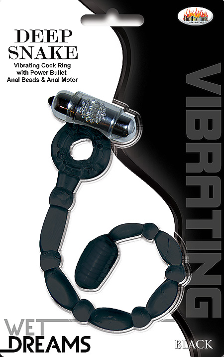And as the packaging states: "Take it to the 'Extreme' with the Hung 'Deep Snake'! The Deep Snake is specifically designed to promote longer lasting erections with it's sure grip penis band! It also stimulates Blood Flow to the penis with it's powerful Vibrating Mega Bullet!