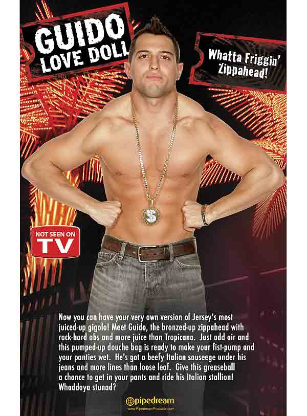 A very cute and contemporary bachelorette blow up doll, the packaging is modeled after the Jersey Shore tv show!