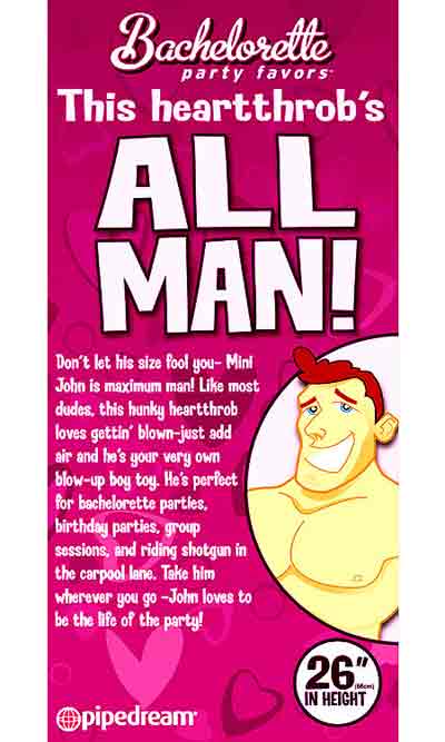 John is just like most every guy, this hunky heartthrob loves getting blown - just add air and this Travel Size John blow up doll is your very own blow-up boy toy.