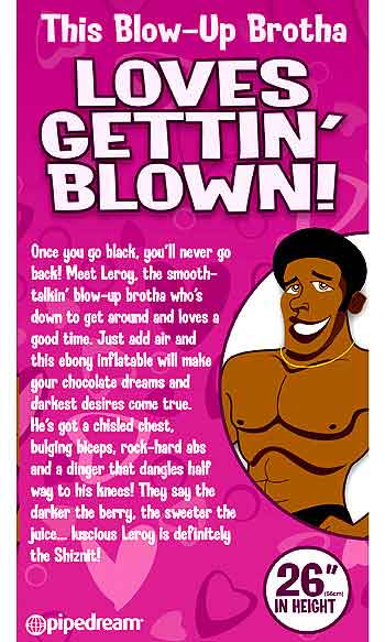Meet Leroy, the smooth-talkin' blow-up brotha who's down to get around and loves a good time." And as they say.. just give him a good blow and this ebony inflatable will make your chocolate dreams and darkest desires come true!